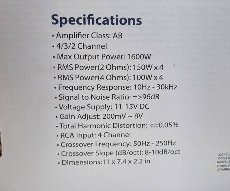 توان خروجی مداوم در هر کانال 4 اهم: ۱۰۰×۴ وات آر ام اس